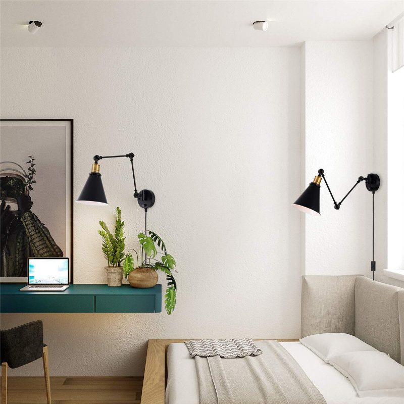 1/2 Db Lengőkaros Fali Lámpa 110v Ipari Dugaszolható Led Világítás Vezetékes Fekete Kivitelben Izzók Nélkül