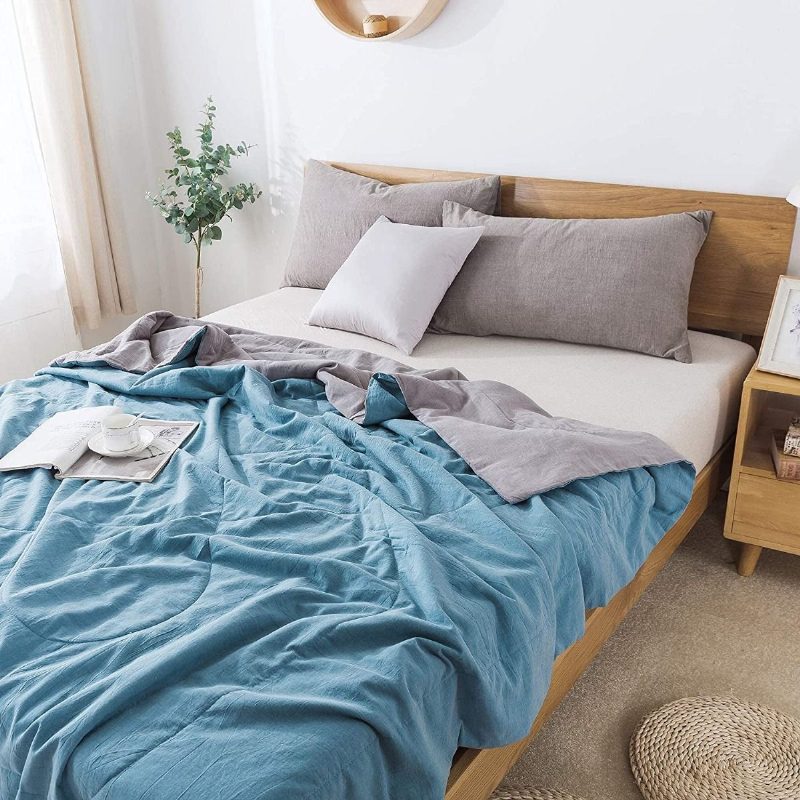 100%-ban Mosott Pamut Ultrapuha Nyári Paplan Megfordítható Kékeszöld És Szürke Teljes Méretű Könnyű