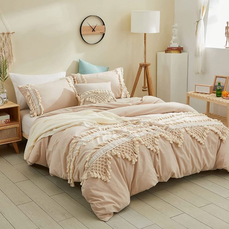- 【Dizájn】Boho Camel Ágyneműgarnitúra, Háromszög Alakú Bojtokkal És Csipkével Díszítve