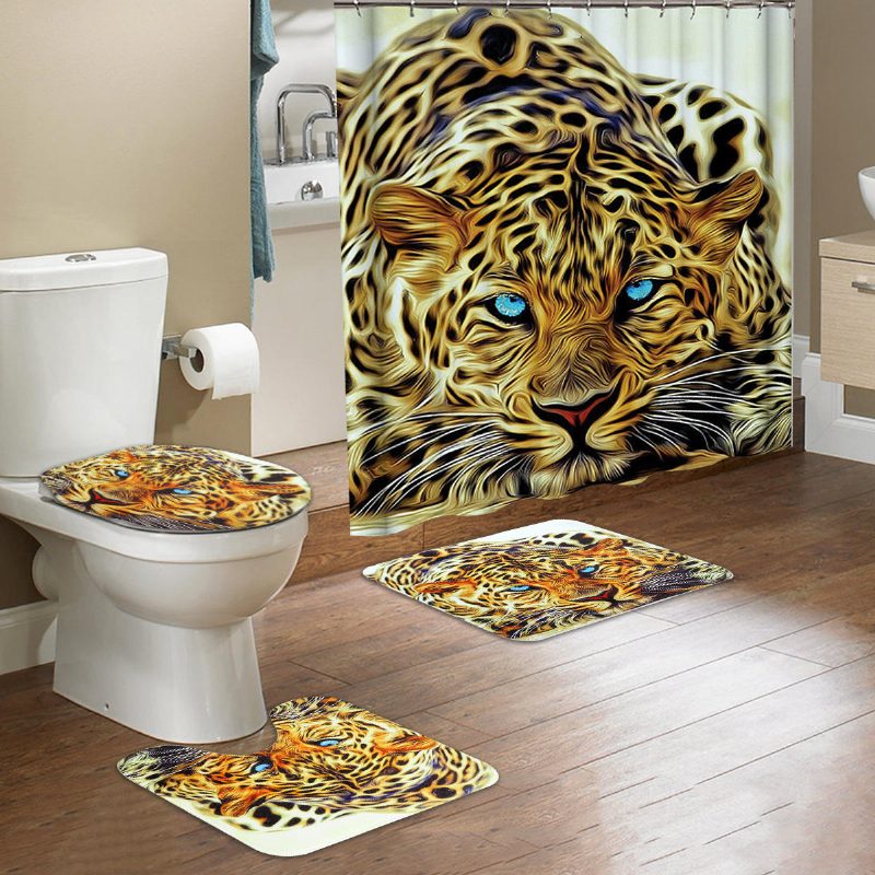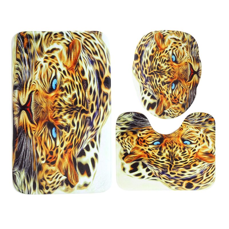3 Db Leopard Panttern Otthoni Fürdőszobai Csúszásgátló Szőnyegpadló Szőnyeg Wc Üléshuzat Szett