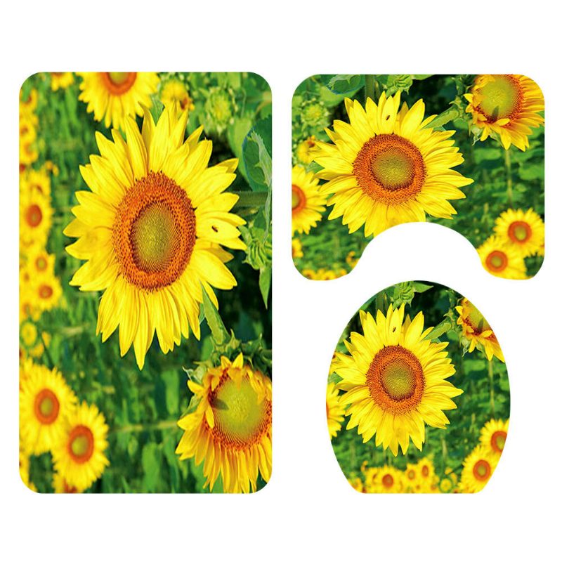 4 Db Csúszásmentes Napraforgó Mintás Wc Poliészter Takarószőnyeg Szett Vízálló Fürdőszobai Zuhanyfüggöny