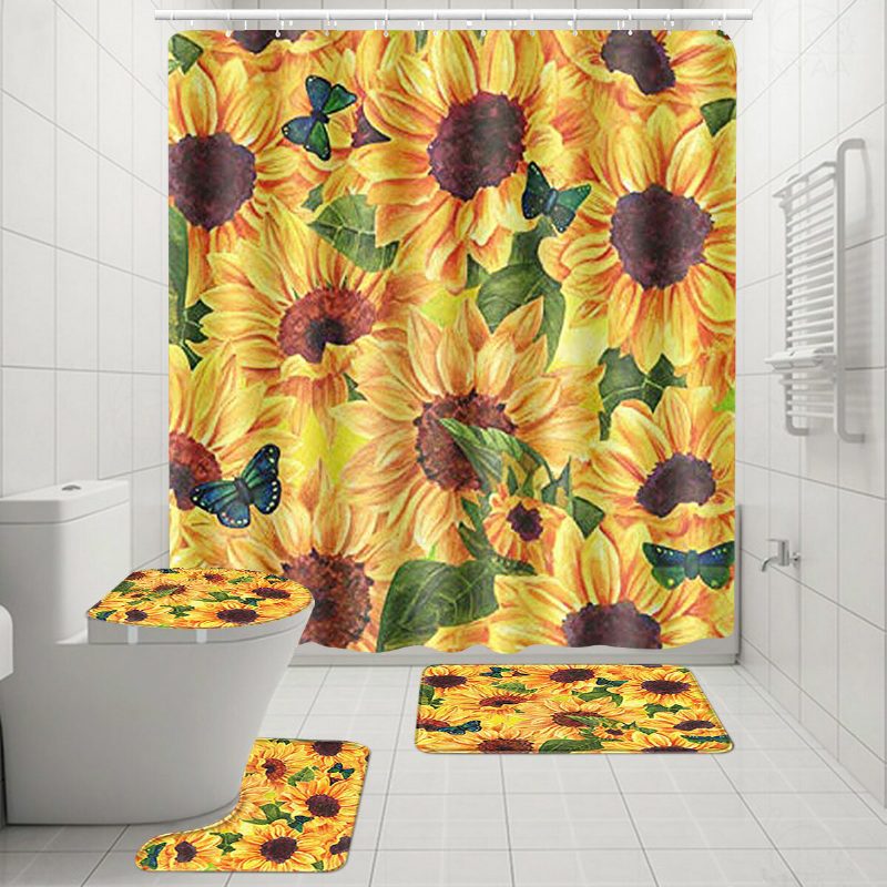 4 Db Fürdőszobai Szőnyeg Szett Talapzatos Fedél Wc Burkolat Zuhanyfüggöny Csúszásmentes