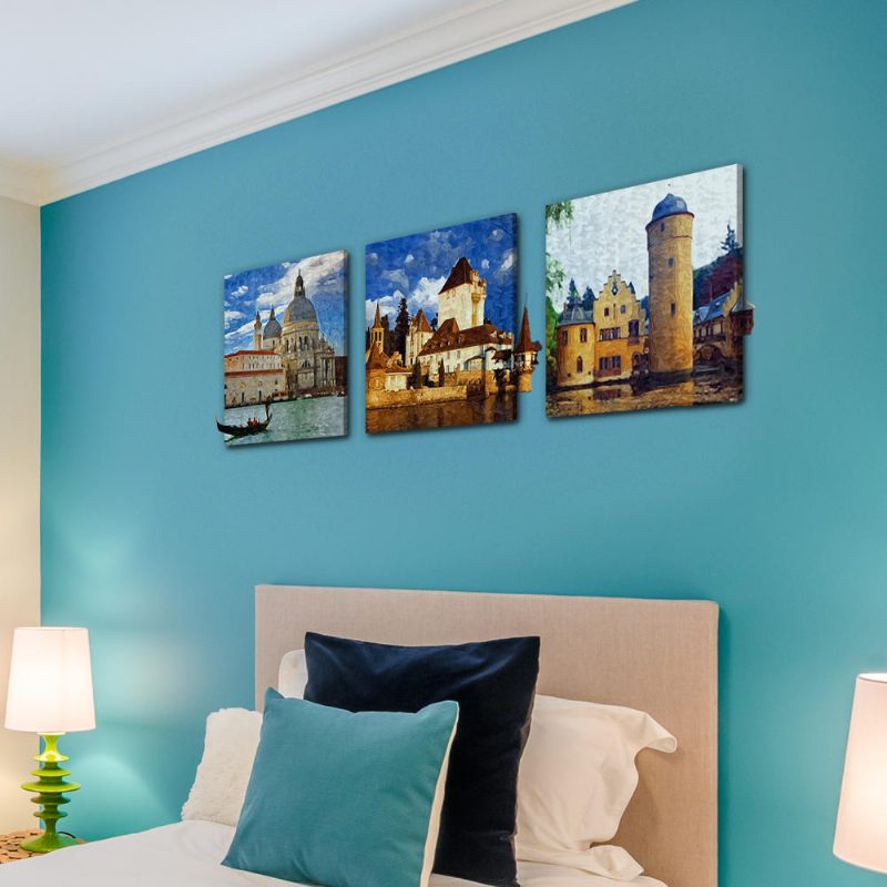 50x50cm 3db Kombinált Pag Diy Keret Nélküli Festmény 3d Jelenet Matrica Olajfestmények Táj Kastély Fal Dekoráció