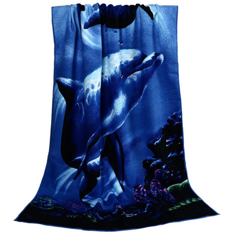 70x150cm Kék Delfin Pingvin Nyomat Nedvszívó Mikroszálas Strandtörölközők Gyorsan Száradó Fürdőlepedő