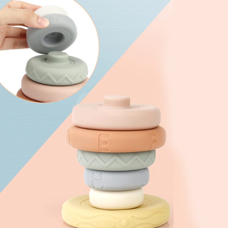 Egymásba Rakható Játék Ezek A Baba Építőkockák Puhák, Tartósak És Könnyen Felvehetők És Egymásra Rakhatók A Baba Kezével. Szintén Összenyomható, És Nyikorgó Hangot Ad.