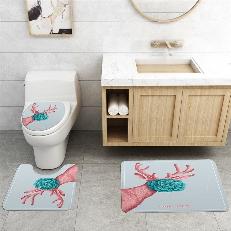 Cartoon Deer Nyomtatott Vízálló Zuhanyfüggöny Szett Csúszásmentes Fürdőszőnyeg Wc Padlószőnyeg