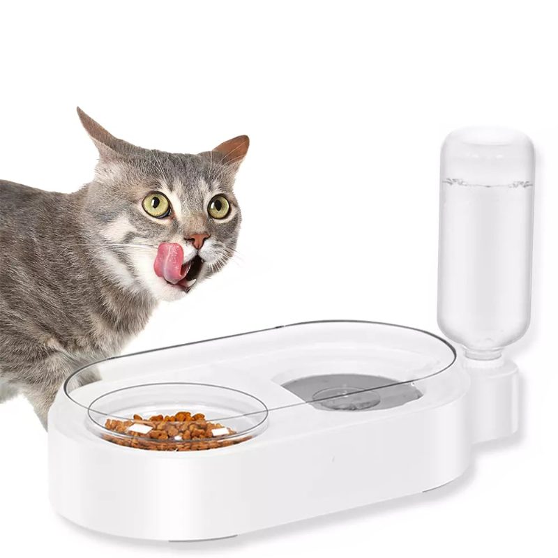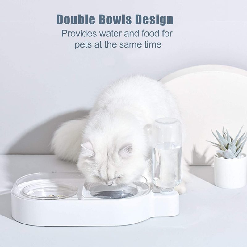 LeírásKettős Macskatálak Kisállatoknak Automata Vízadagoló Kivehető Kutyapohár Etetőtál, Kiömlésmentes Állateledel Vizestálak Macskáknak És Kiskutyáknak