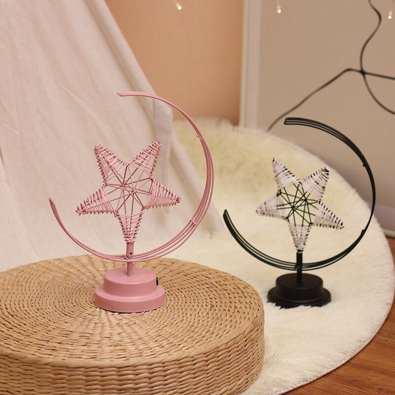 Elemes/usb Tápellátású Meleg Fény Fekete/rózsaszín Star Moon Éjszakai Asztali Lámpa Születésnapi Ajándék