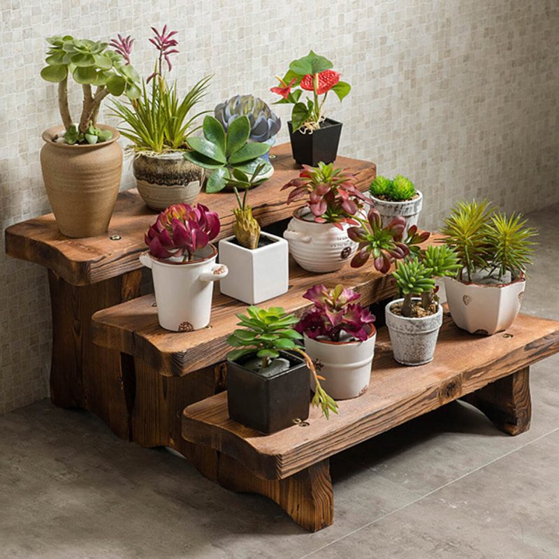 Fából Készült Növényállvány Létra Virágcserép Tároló Állvány Padló Polctartó Otthoni Iroda Kerti Dekoráció