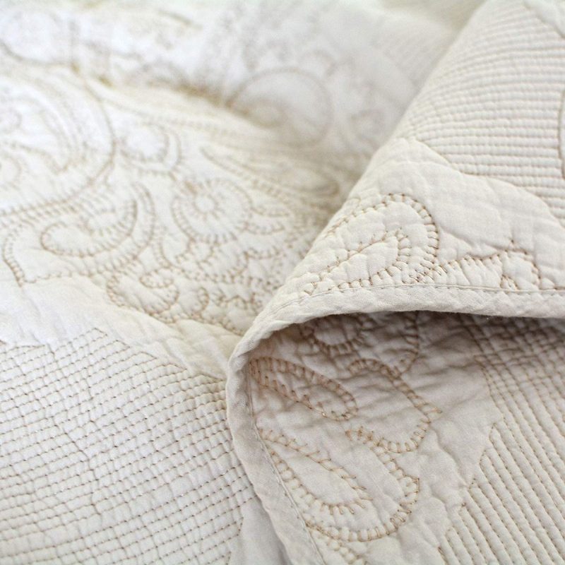Fehér Bézs Vintage Virágos Paplan Szett Queen Méretű Ágytakaró