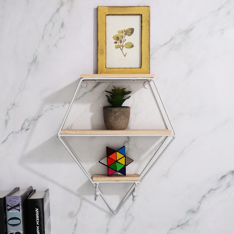 Funkció:1. Ötletes Dizájn: Egyszerre Állványok És Fali Dekorációk, Kihasználva A Helyet. 2. Színezd A Szobát: Ezek A Polcok Tökéletesek Arra, Hogy Karaktert Adj Bármely Helyiségnek. Geometrikus Formája Kellemes A Szemnek, Meleg Érzést Kelt És Kényelmesebbé Teszi A Szobáját. 3. Divattervezés: A Geometriai Forma Kellemes A Szemnek, Meleg És Kényelmes, Kényelmesebbé Teszi A Teret. Önmagukban Használva Nagyon Egyszerű Funkció. Együtt Létrehozhat Egy Méhsejt Állványt. Minden Alkatrész Védőréteggel Van Ellátva. 4. Erős És Tartós: Kiváló Minőségű Vasból Készült, Így Stabil És Tartós. Ezek A Kézzel Készített Párkányok Bármivel Megtölthetők: Vázákkal, Fotókkal Vagy Könyvekkel.