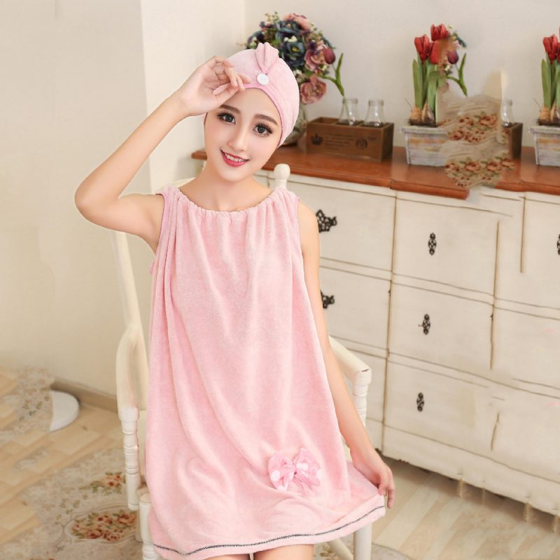 Honana Bx-r972 Nedvszívó Fürdő Kényelmes Mikroszálas Női Szoknya Fürdőlepedő Fürdőköpeny Fürdősapkával