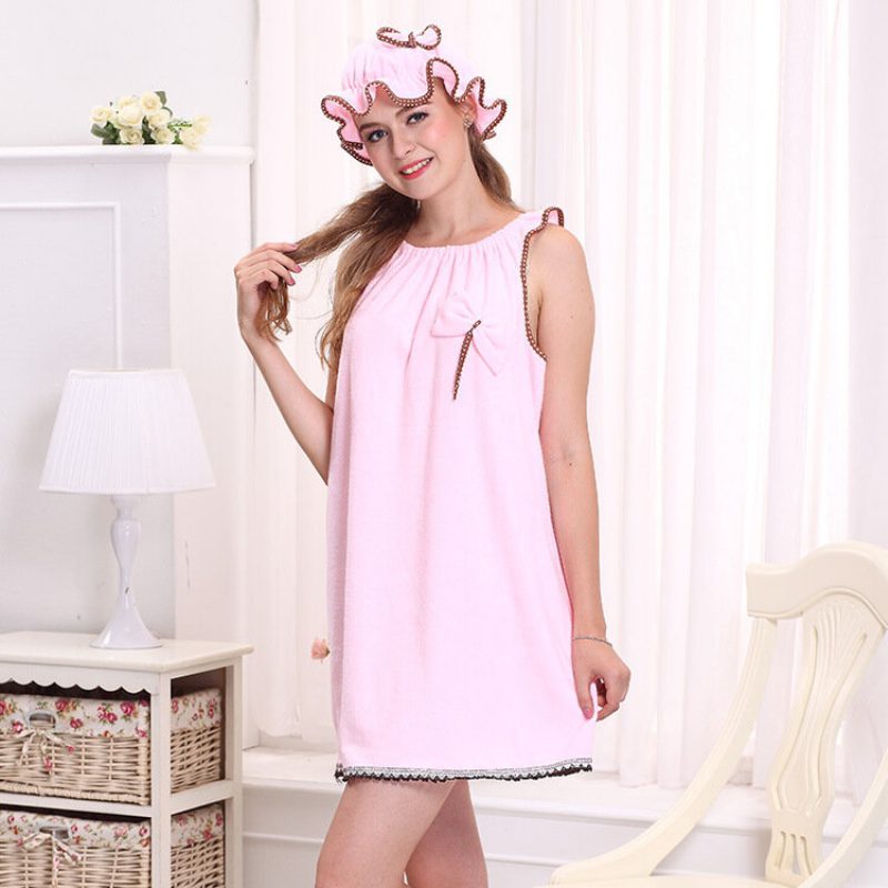 Honana Bx-r980 Nedvszívó Fürdő Kényelmes Mikroszálas Női Szoknya Fürdőlepedő Fürdőköpeny Fürdősapkával
