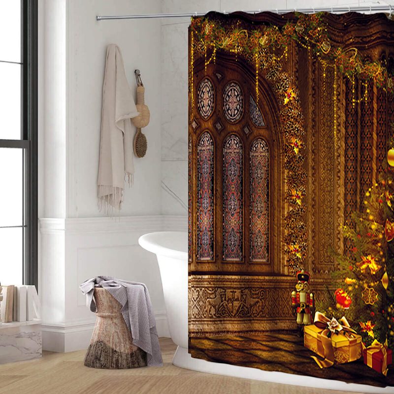 Karácsonyi Zuhanyfüggöny Vízálló Poliészter Szövet Fürdőfüggöny Nem Mérgező Szagtalan Fürdőszőnyeg Szett