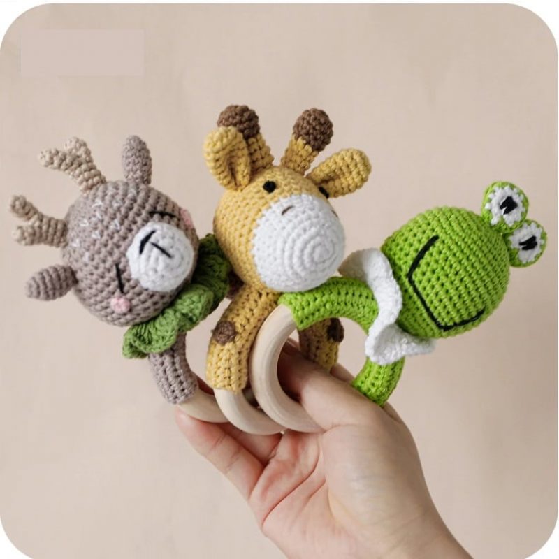Kötött Baba Csörgő Fogasjáték Fából Készült Csengővel