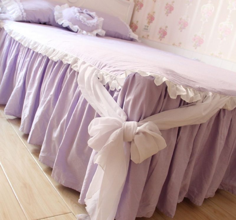 Lányok Lila Ágyneműgarnitúra Koreai Fehér Csipke Fodros Paplanhuzat 4 Részes