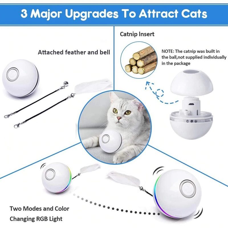 Ez A Macskajáték Golyó Automatikusan Megváltoztatja Az Irányát, Amikor Falnak, Széknek, Ajtónak Stb. Ütközik. Nincs Szükség További Segítségre, Mindössze Annyit Kell Tennie, Hogy Bekapcsolja A Labdát A Játékhoz, Majd Fordul. Kikapcsol, Ha Kedvence Elfogy, És Befejezi A Játékot