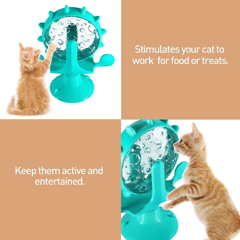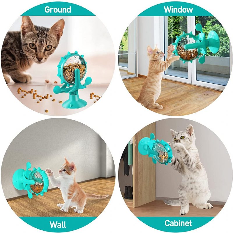 Forgó Szélmalom Tervezés – Az Egyedülálló Szélmalom Kialakításnak Köszönhetően A Puzzle Adagoló Vízszintesen És Függőlegesen Is Könnyen Forgatható . Egy Enyhe Érintés Vagy Finom Lökés, Hogy Nassolnivalót Kaphasson, Szórakoztatóbb És Vonzóbb A Cicák Játék Közbeni Étkezése!
