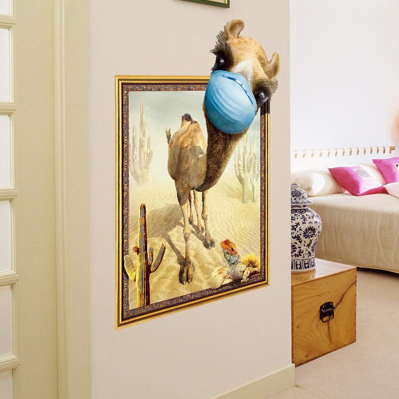 Miico Creative 3d Desert Camel Frame Pvc Kivehető Otthoni Szoba Dekoratív Fali Ajtó Dekor Matrica