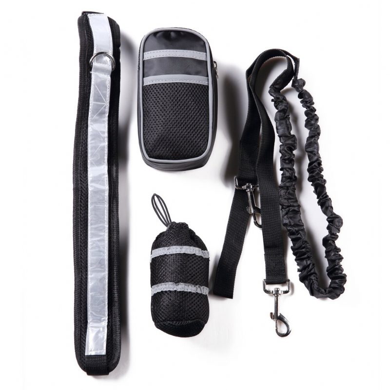 Nylon Kisállat Futó Kutyaszalag Elasztikus Póráz Cipzáras Táska Fényvisszaverő Deréköv Tartó Készlet